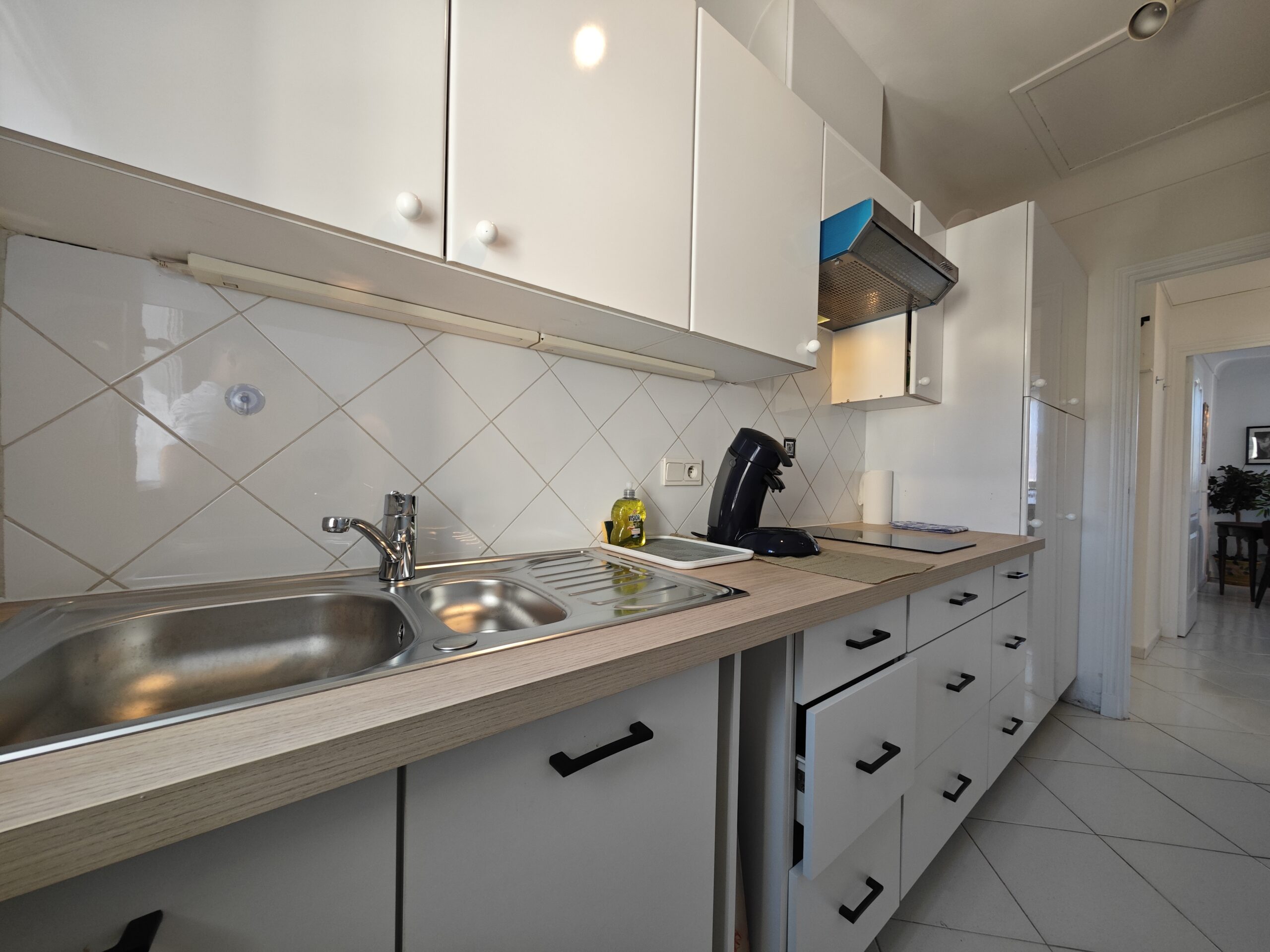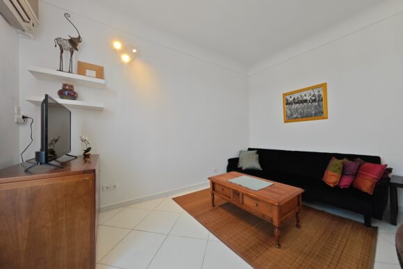 L’appartement dispose d’un accès internet, d’une télévision et de l’air conditionné. La chambre est équipée de deux lits simples. Dans le salon un canapé-lit peut accueillir 2 personnes. Dans la cuisine vous trouverez ces équipements :